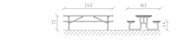 Picknicktisch aus Schweizer Kiefernholz druckimprägniert, Länge 240 cm, ohne Rückenlehne, Stahlkonstruktion feuerverzinkt.