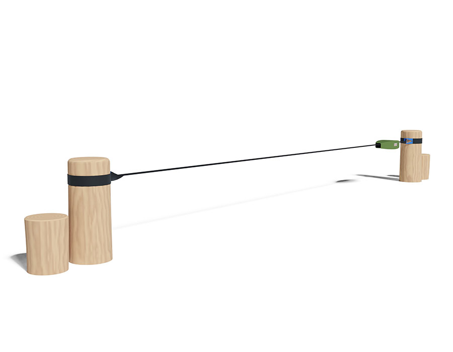 Slackline aus chemisch unbehandeltem Robinienkernholz geschliffen, mit Slacklineband in Farbe schwarz.