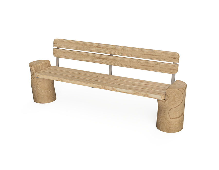 Parkbank aus Schweizer Lärche roh, Länge 216 cm, mit Rückenlehne, Konsolen aus chemisch unbehandeltem Robinienkernholz geschliffen, für minimale Einbautiefe 40 cm.