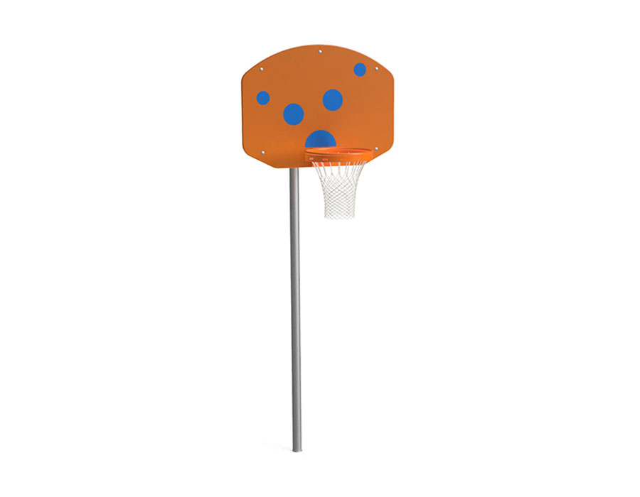 Streetball aus Stahlrohr feuerverzinkt, Zielbrett aus Polyäthylen, mit Basketballkorb, mit Netz und Bodenhülse, minimale Einbautiefe 50 cm.