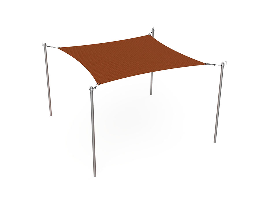 Beschattungssystem mit 4 Stahlrohrstützen feuerverzinkt, Netzgrösse 300 x 300 cm, Schutznetz aus HDPE-Gewebe, mit eingearbeiteten Oesen, Griffe höhenverstellbar, Farbe nach Kollektion, für minimale Einbautiefe 50 cm.