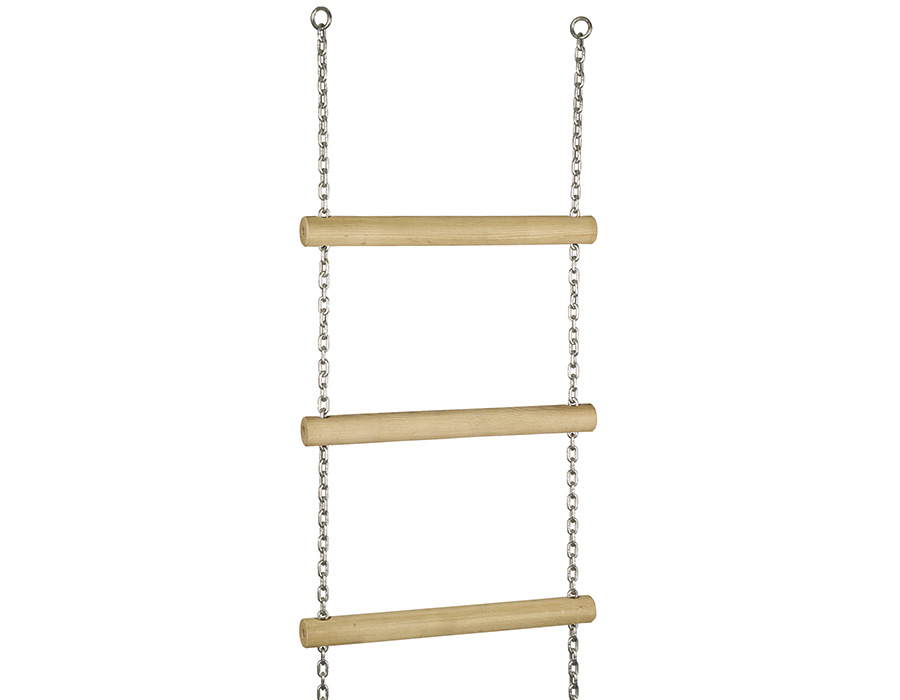 Strickleiter mit Chromstahlketten, Länge 246 cm, 5-teilig, mit Eschensprossen, inkl. Kettenverlängerung zum Einbetonieren.