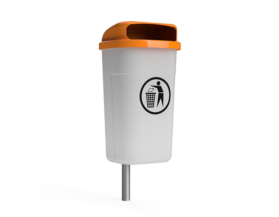 Polyethylene waste-paper basket, size 44 cm, capacity 50 litres, colour grey and orange, with stand post.