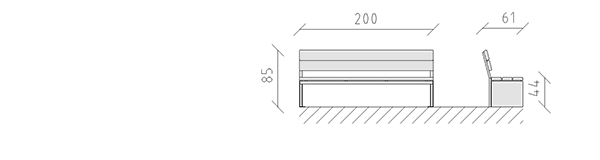 Park bench made of raw Swiss larch, length 200 cm, steel construction hot-dip galvanised and additionally lacquered in VAG E13.
