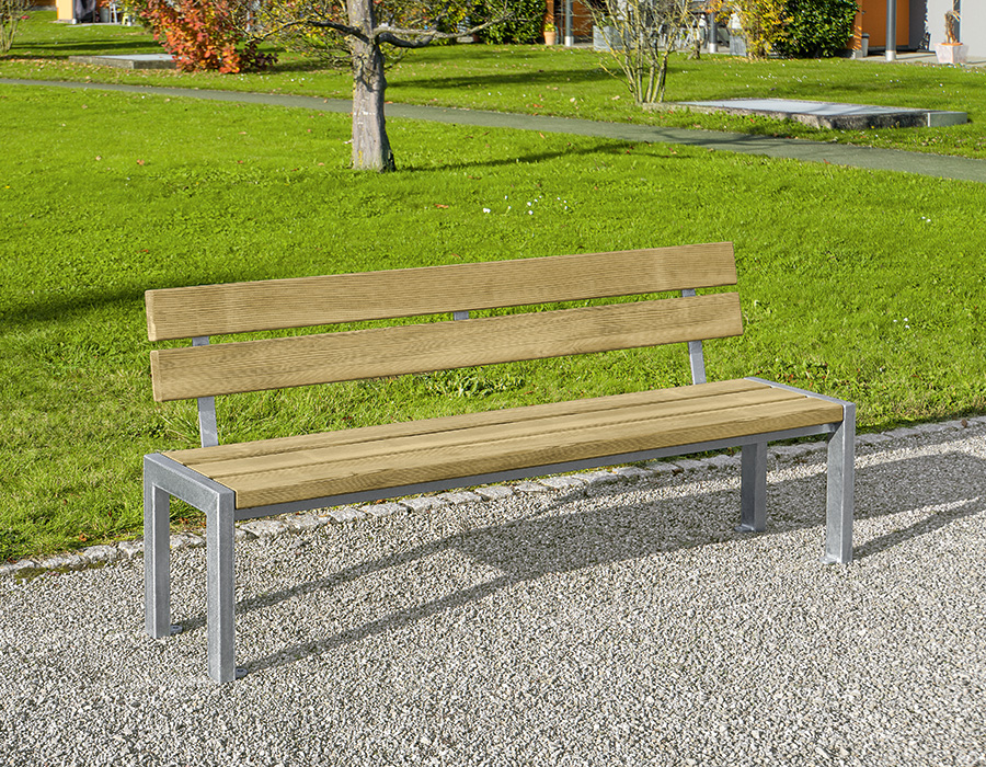 Park bench made of Swiss pine, pressure impregnated, length 180 cm, with backrest, steel construction hot-dip galvanised.