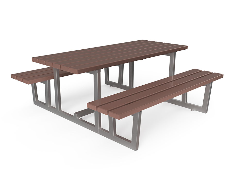 Picnic table slatted made of recycled plastic, length 180 cm, colour brown, steel construction hot-dip galvanised.