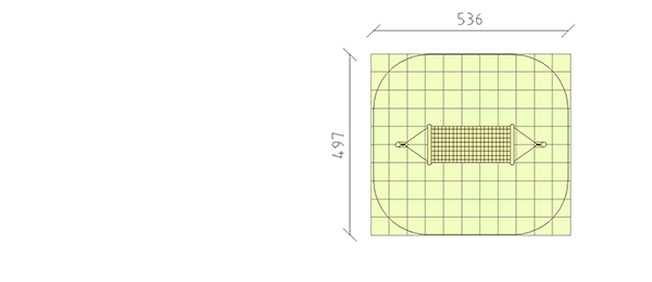Hammock made of hot-dip galvanised steel tube, lying mat made of red net mesh, with suspension devices and chain connection made of stainless steel, minimum installation depth 50 cm.
