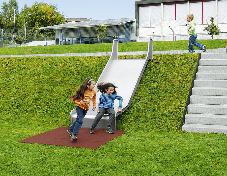 Wide slide for mounting height 200 cm, made of stainless steel, fully pickled and neutralized, incl. steel foot brackets for minimum installation depth 50 cm.
