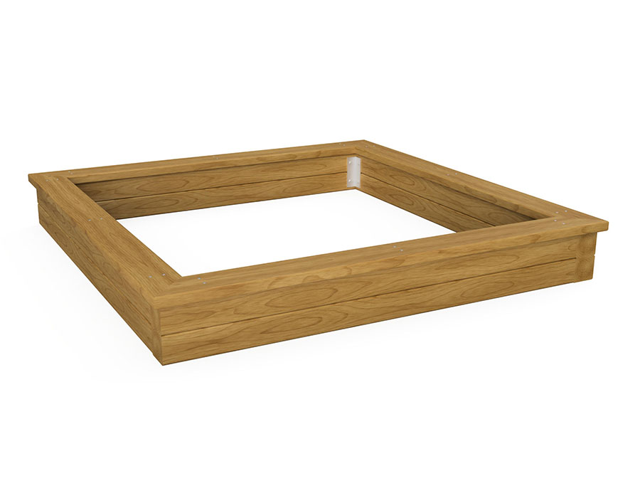 Bac à sable en bois de pin Suisse imprégné sous pression, dimensions 200 x 200 cm, poutres en bois à deux plis, couvertes d'une surface de siège.