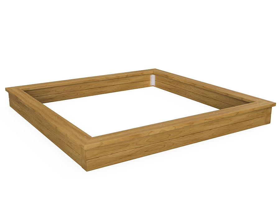 Bac à sable en bois de pin Suisse imprégné sous pression, dimensions 250 x 250 cm, poutres en bois à deux plis, couvertes d'une surface de siège.