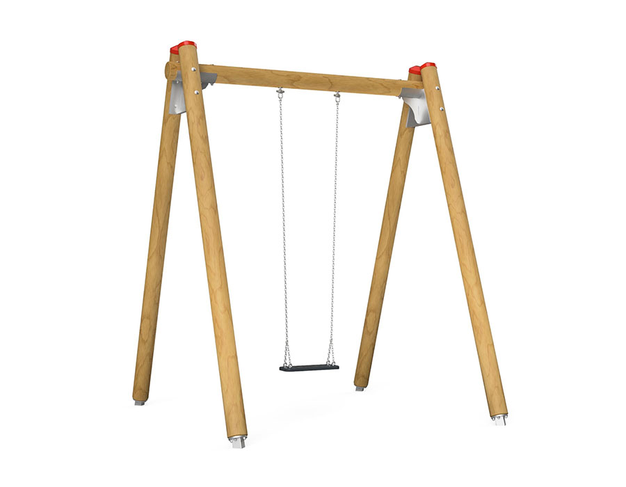 Altalena in legno di pino svizzero multincollato e impregnato a pressione, dispositivo di sospensione in acciaio inox per un seggiolino, incluso console del piede in acciaio per una profondità di installazione minima di 50 cm.