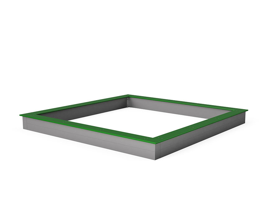Sabbiera di travi di plastica riciclata, colore grigio, grandezza a volontà, due strati, con pannello a sedere di polietilene.