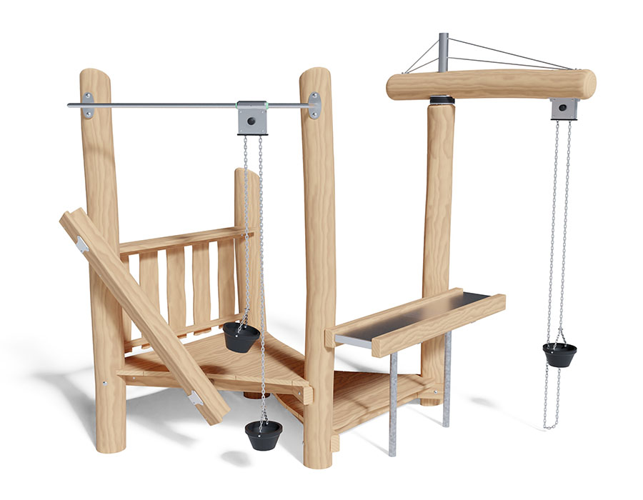 Gicoo di sabbia fatto di durame di robinia non trattato chimicamente e levigato, altezza della piattaforma 20/50 cm, con gru rotante, gru scorrevole e grondaia a V.